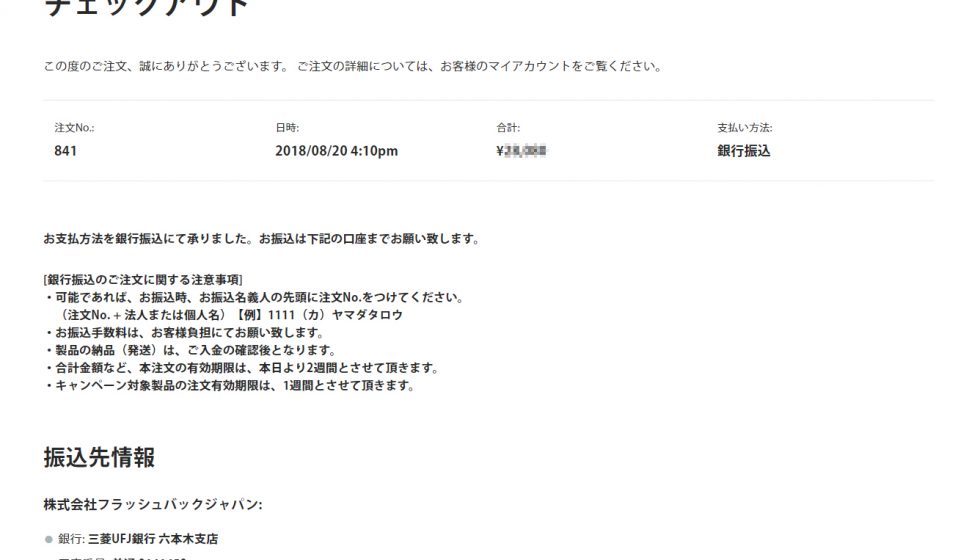 注文が完了しました。注文履歴につきましては、マイアカウント内のご注文からもご確認いただけます。